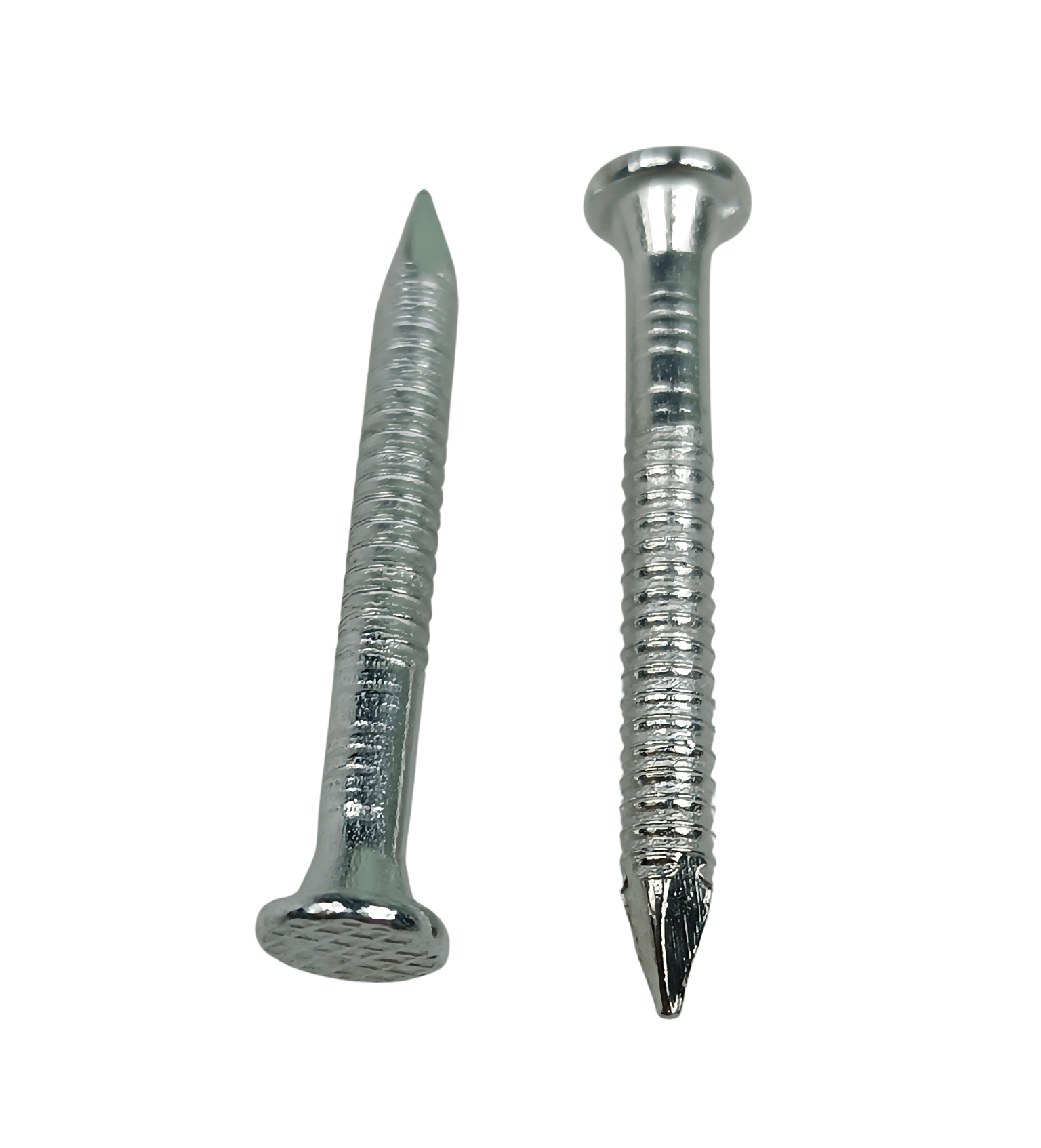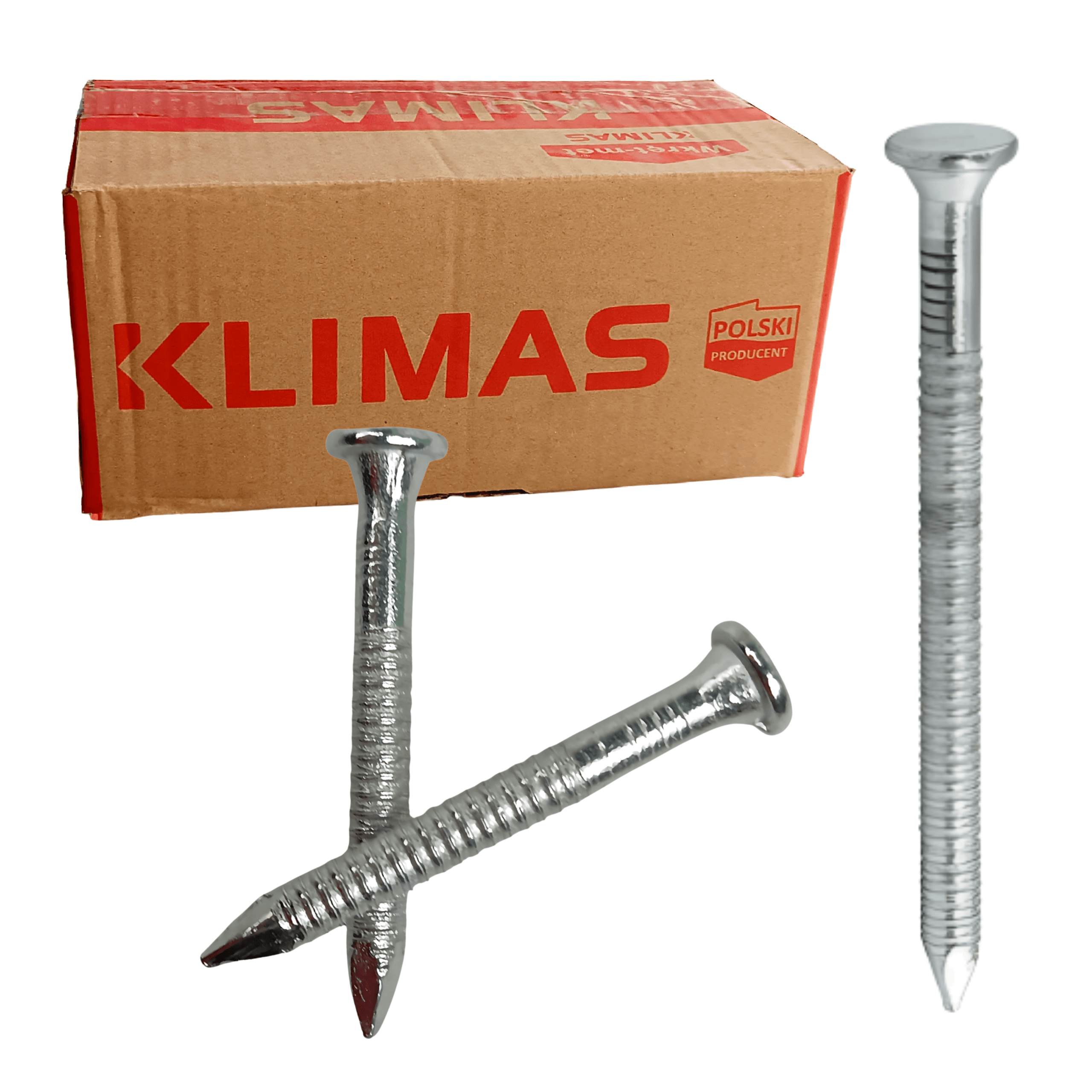 Trzpień gwoździa wyposażony jest w zębate karby, które skutecznie zwiększają siłę zakotwienia i chronią przed wyrywaniem z podłoża. Wykonane ze stali niskowęglowej pokrytej ocynkiem białym, gwarantują odporność na korozję i długą trwałość połączenia.