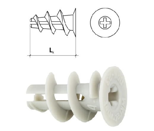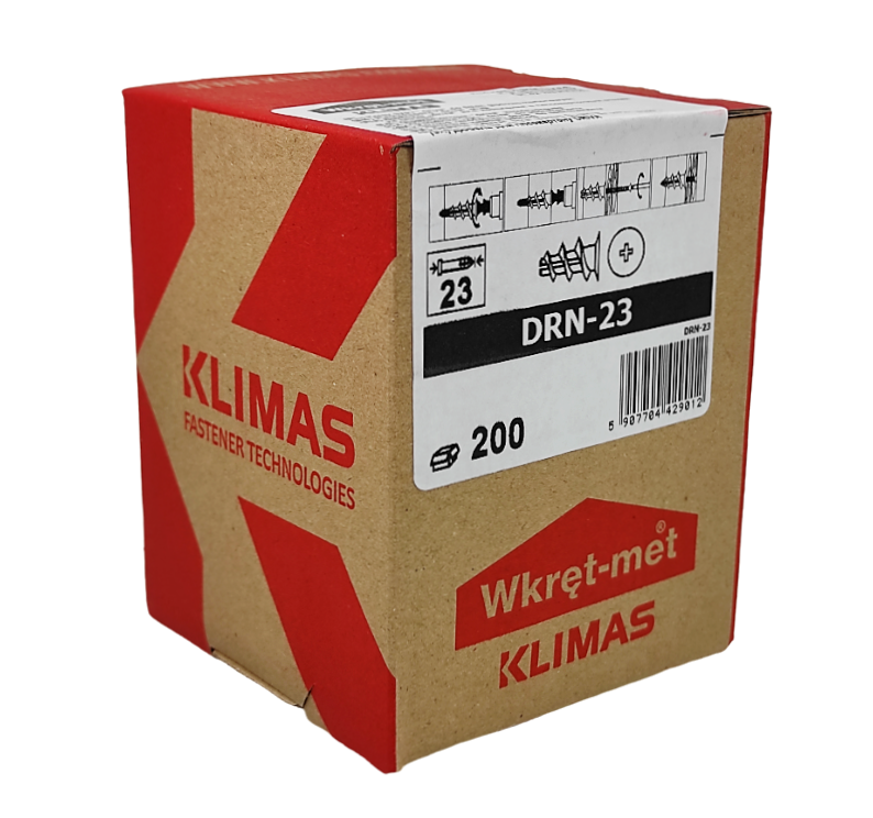 DRN-23 jest to kołek ślimakowy typu "driva", który stosujemy do mocowania w płytach kartonowo-gipsowych, używany jako korpus w połączeniu z elementami łączącymi. Szeroki gwint kołka łatwo zagłębia się w podłożu g-k, a jednocześnie posiada dużą powierzchnię docisku.
