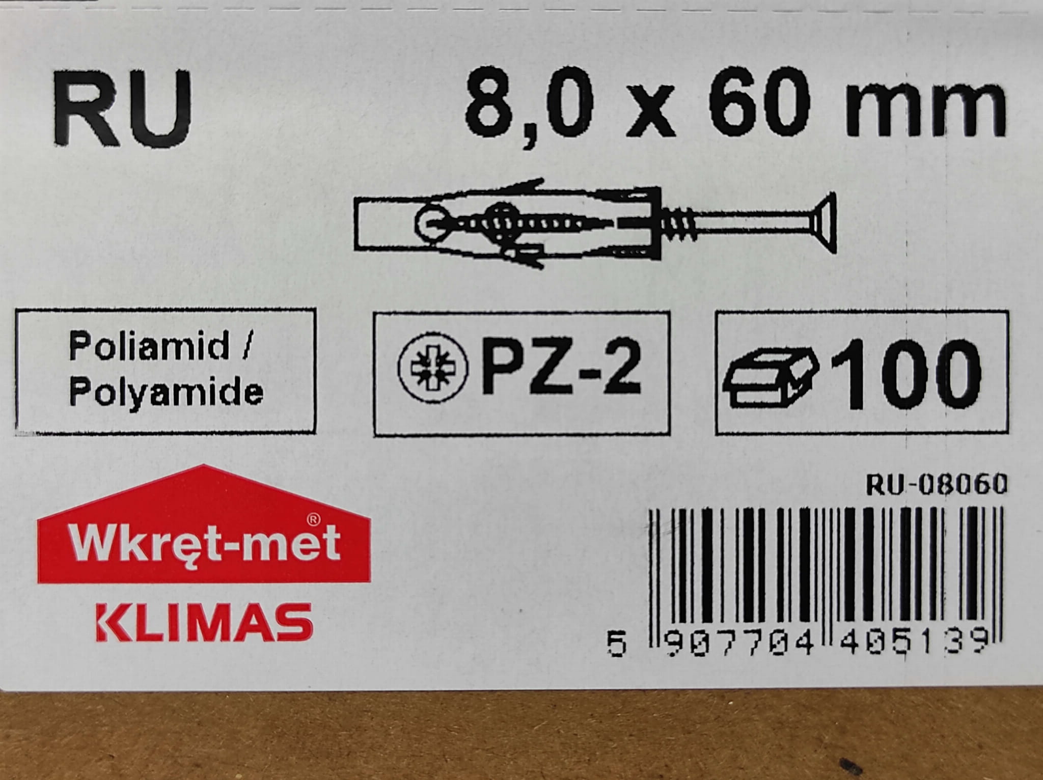 Kołki rozporowe uniwersalne RU 8x60 łeb stożkowy