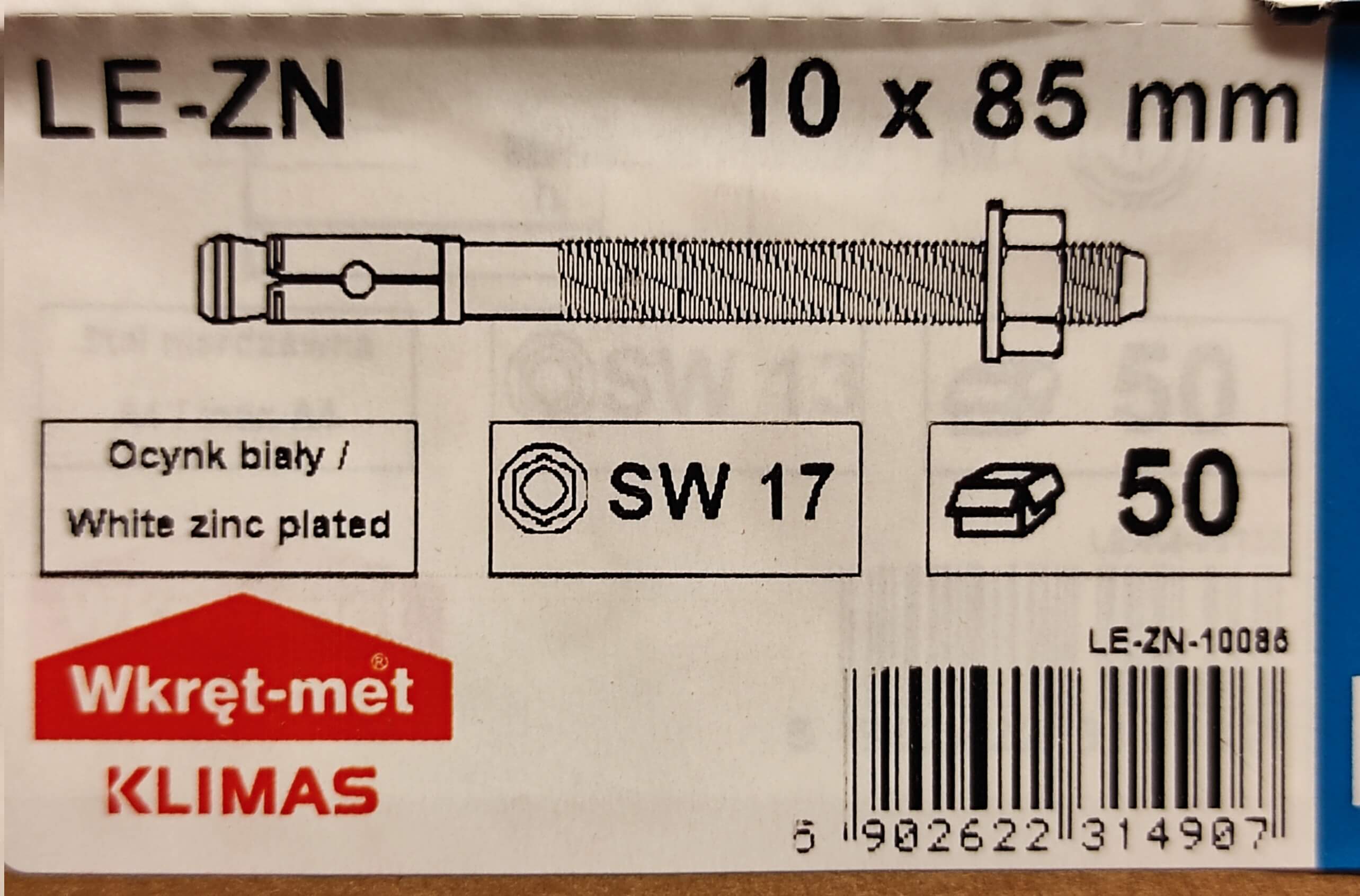 Kotwy mechaniczne do betonu LE-ZN 10x85mm