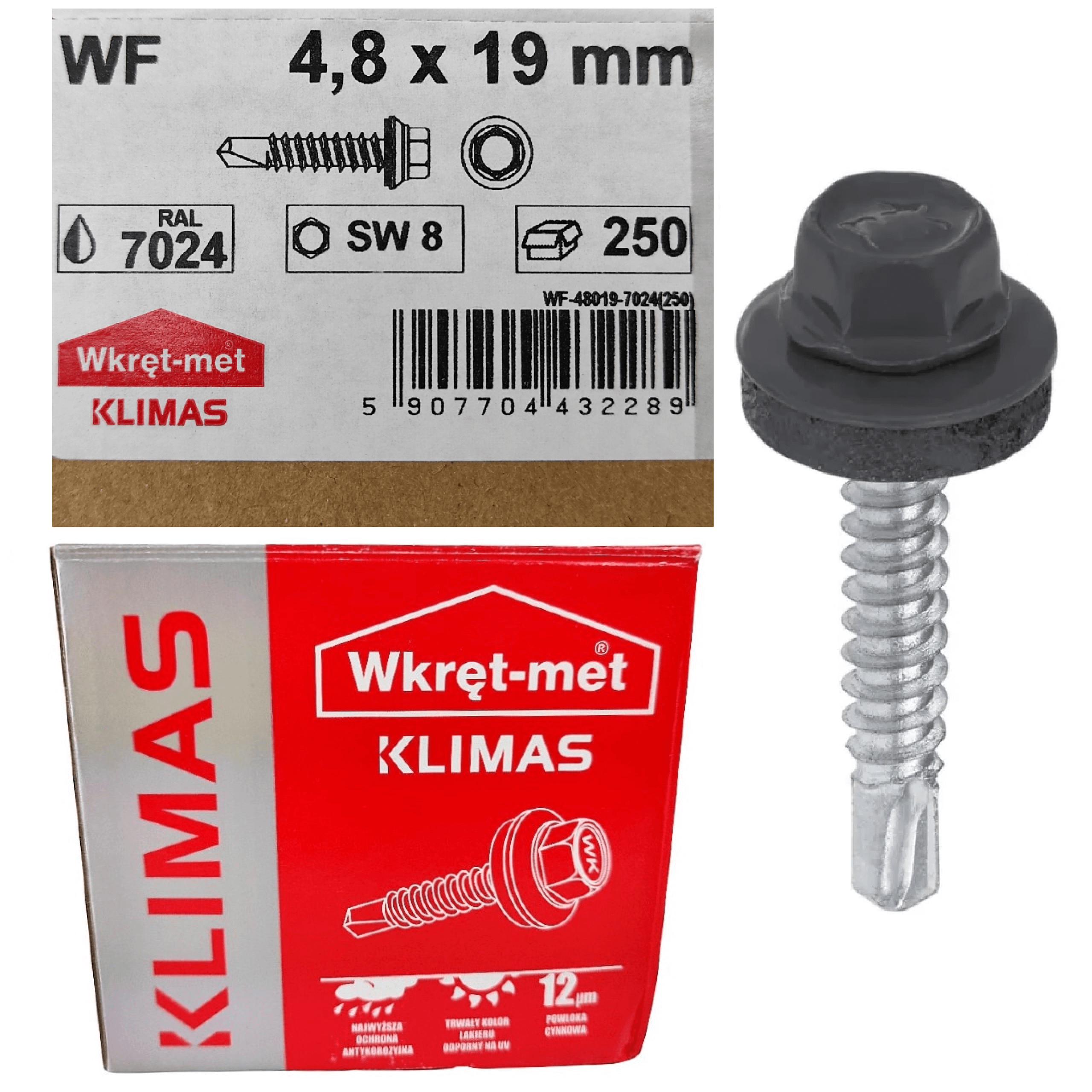 Wkręty farmerskie do metalu kolor ciemnoszary 4,8x19mm WF-48019-7024