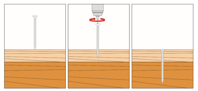 4. Wkręty należy wkręcać bezpośrednio do podłoża drewnianego bez wcześniejszego wywiercenia otworów